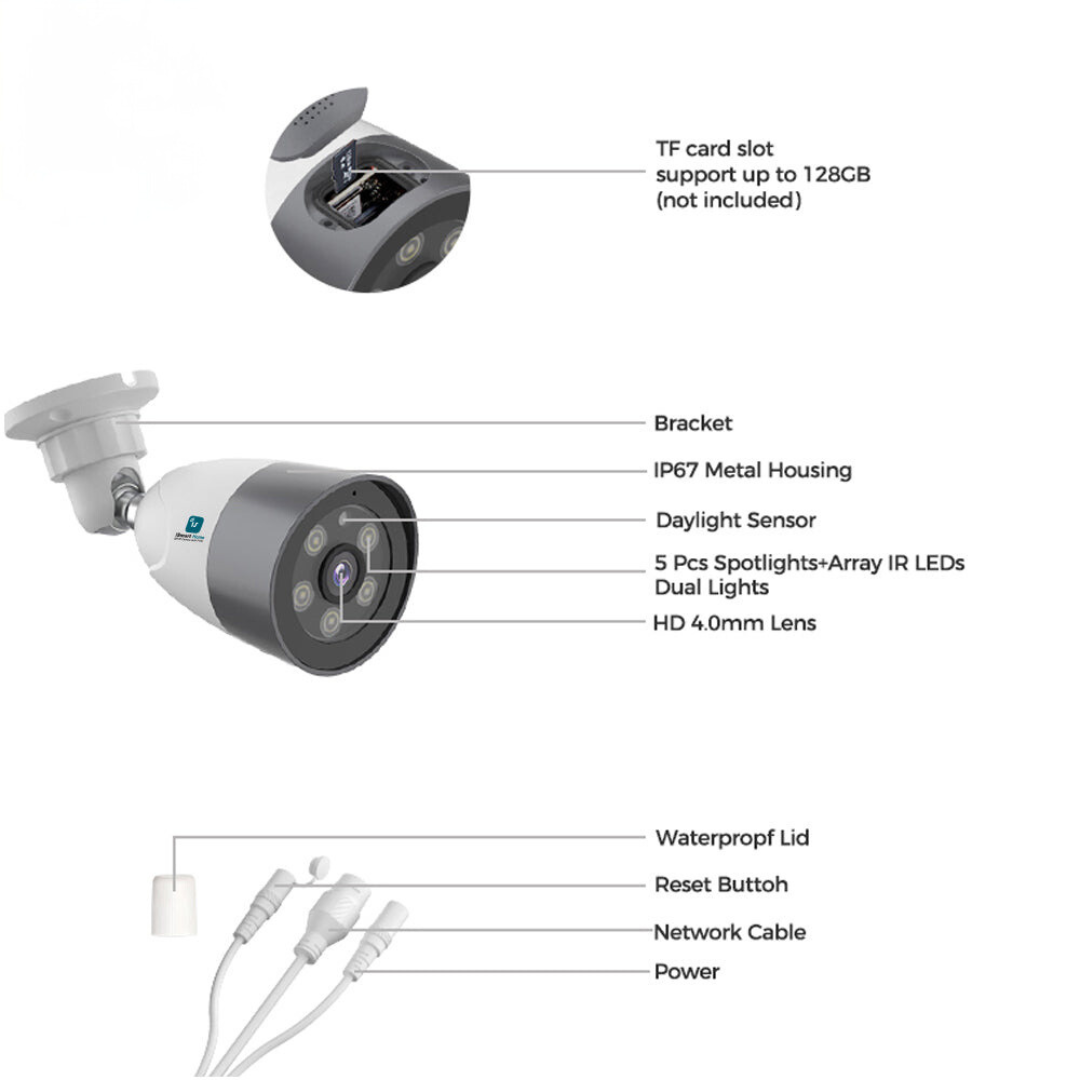 ISH-4MPOE1 Waterproof Bullet 4MP POE IR Dual Lights